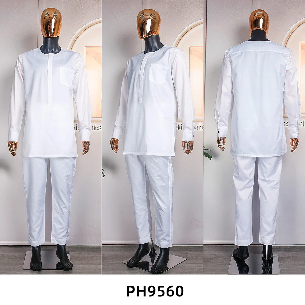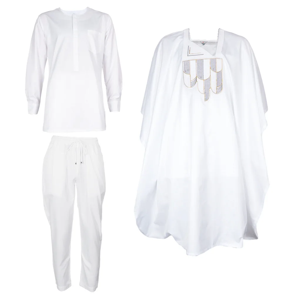 Buy 3 Piece African Clothes for Men Summer African Men Long Sleeve Robes Top Long Pant Matching Sets Outfits Dashiki Africa Clothing .