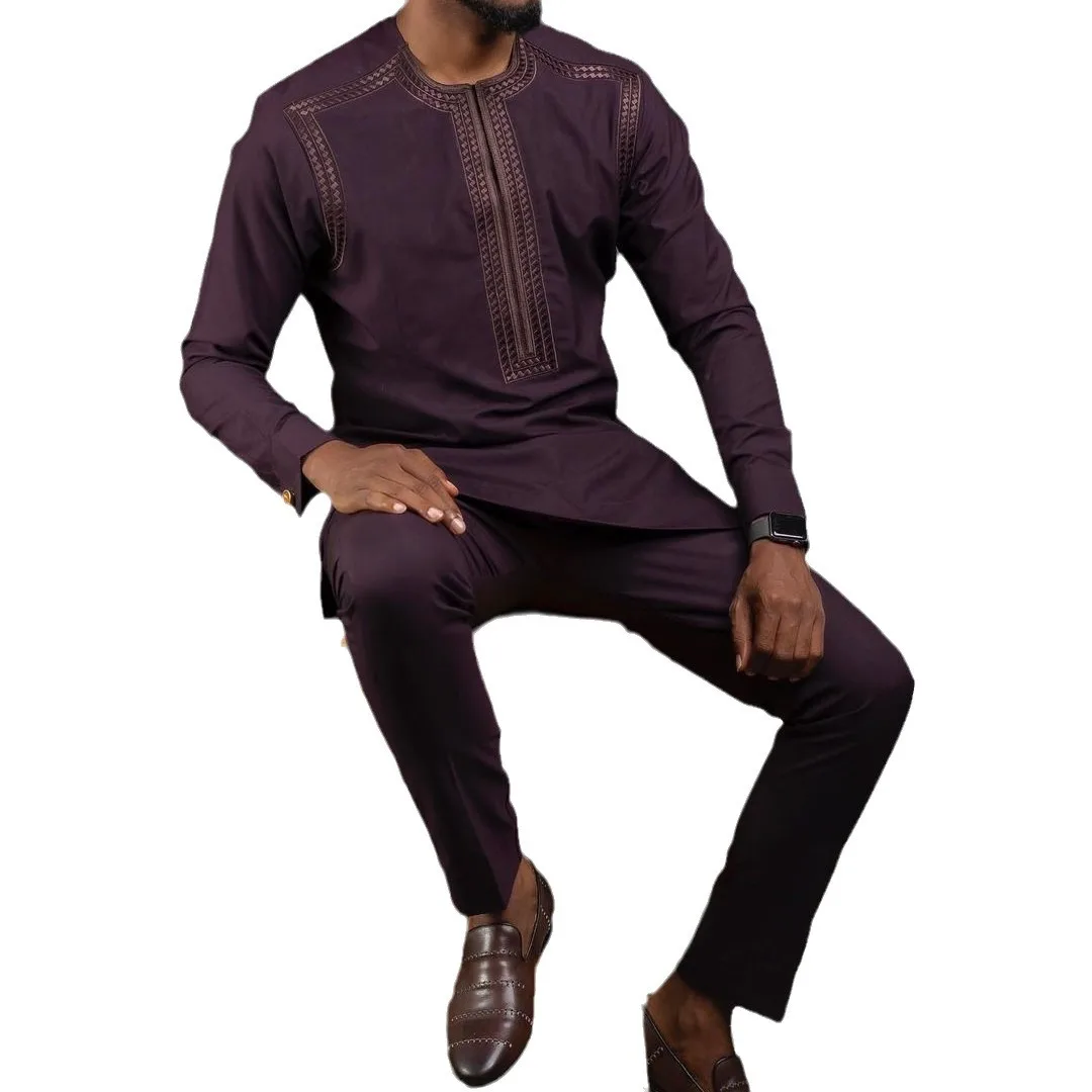 Buy African Clothes for Men Autumn African Men Long Sleeve O-neck Plus Size 2 Piece Top Pant Matching Sets Outfits Africa Clothing