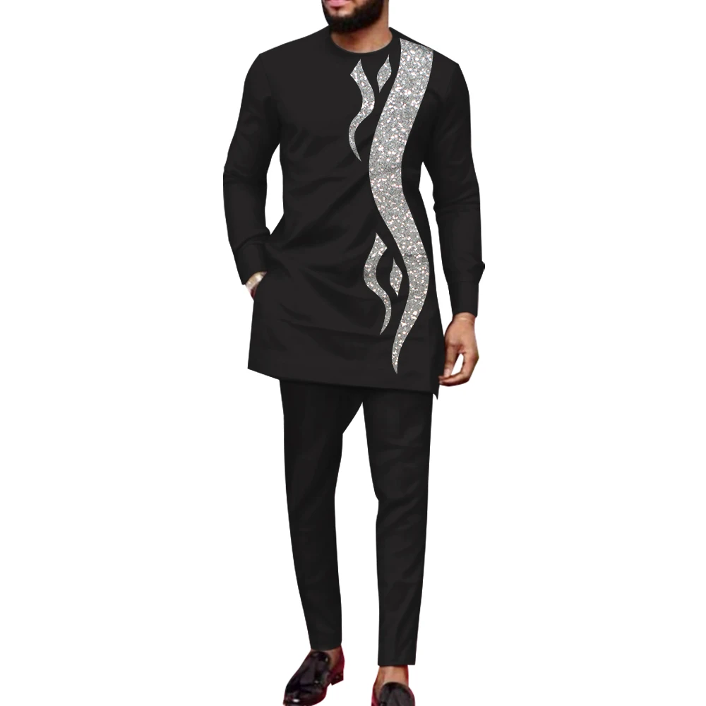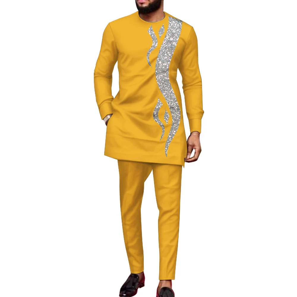 Bazin Riche African Men Clothing Dashik Men Suit Casual 2 Pcs Set Shirt and Pant Fashion Sport Style Original Nigerian Men OutfiBazin Riche African Men Clothing Dashik Men Suit Casual 2 Pcs Set Shirt and Pant Fashion Sport Style Original Nigerian Men Outfi