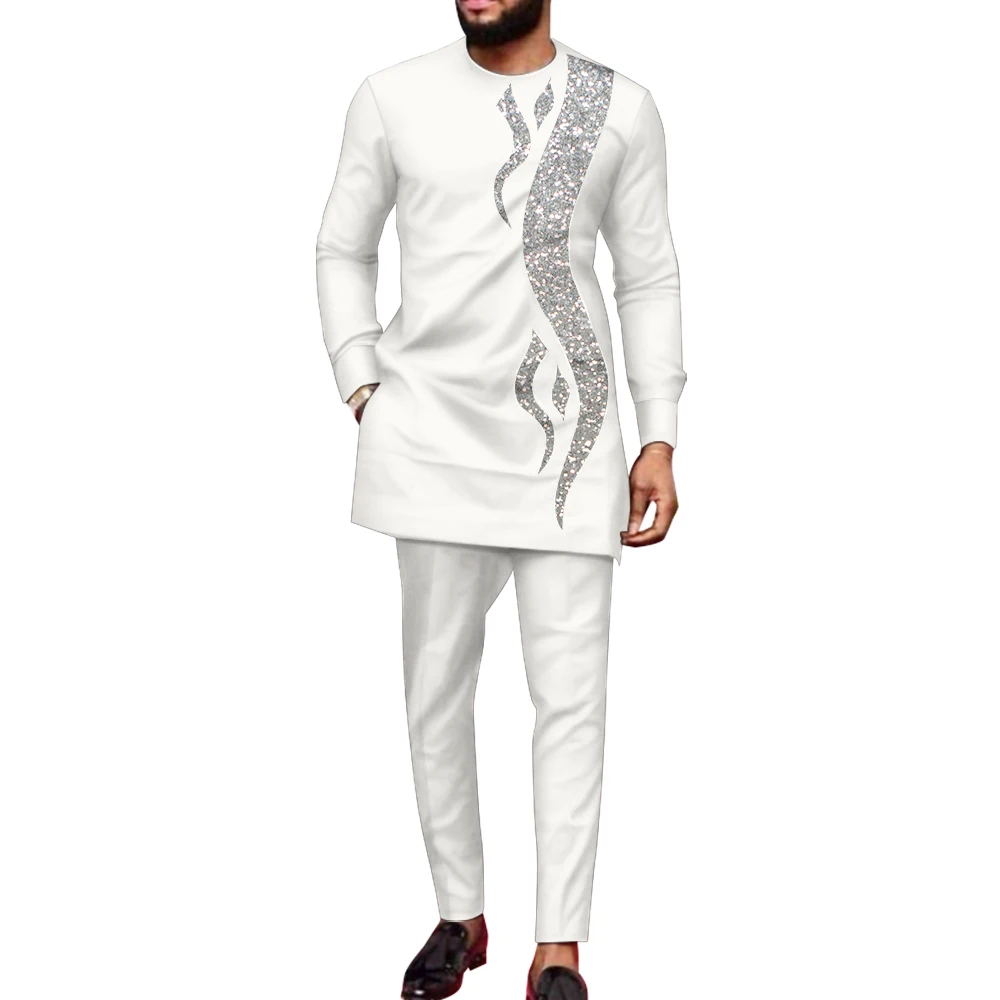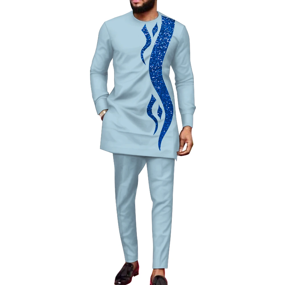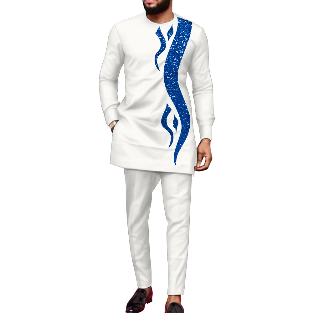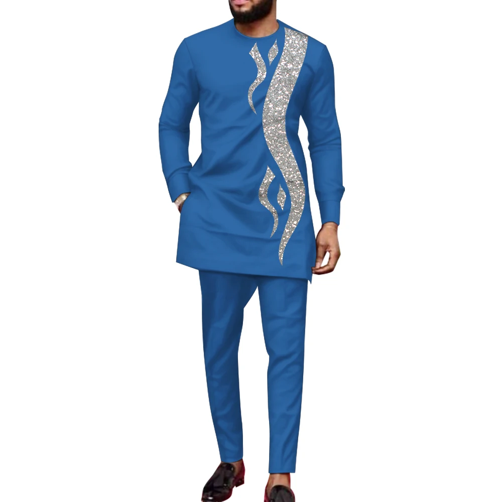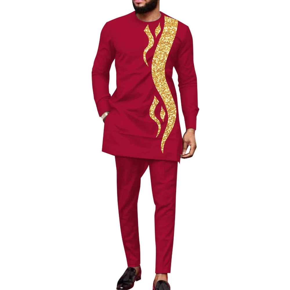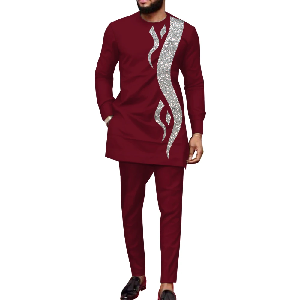 Buy Bazin Riche African Clothes for Men 2 Pieces Set Long Sleeve Shirt and Trousers Dashiki Men Suits African Men Boubou Wyn1588